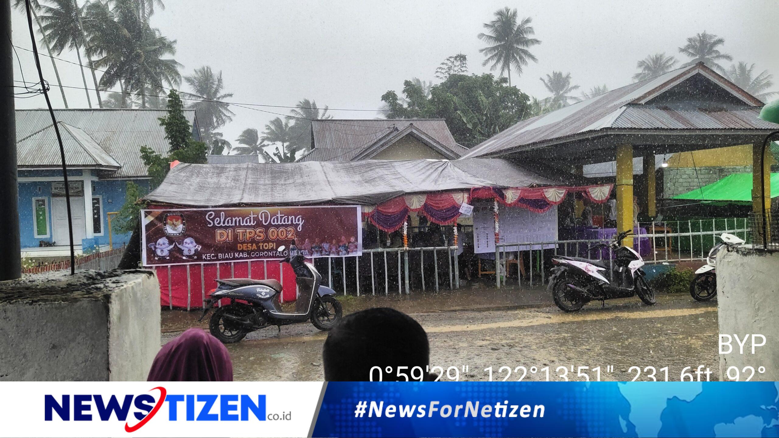 Newstizen | Topi – Hujan deras tidak menyurutkan antusias warga Desa Topi dalam mengikuti jalannya pencoblosan Pemilu 2024. Meskipun turunnya hujan membuat kondisi cuaca tidak begitu bersahabat, para pemilih tetap bersemangat untuk memberikan suaranya di tengah rintik-rintik air. Rabu (14/02/2024)