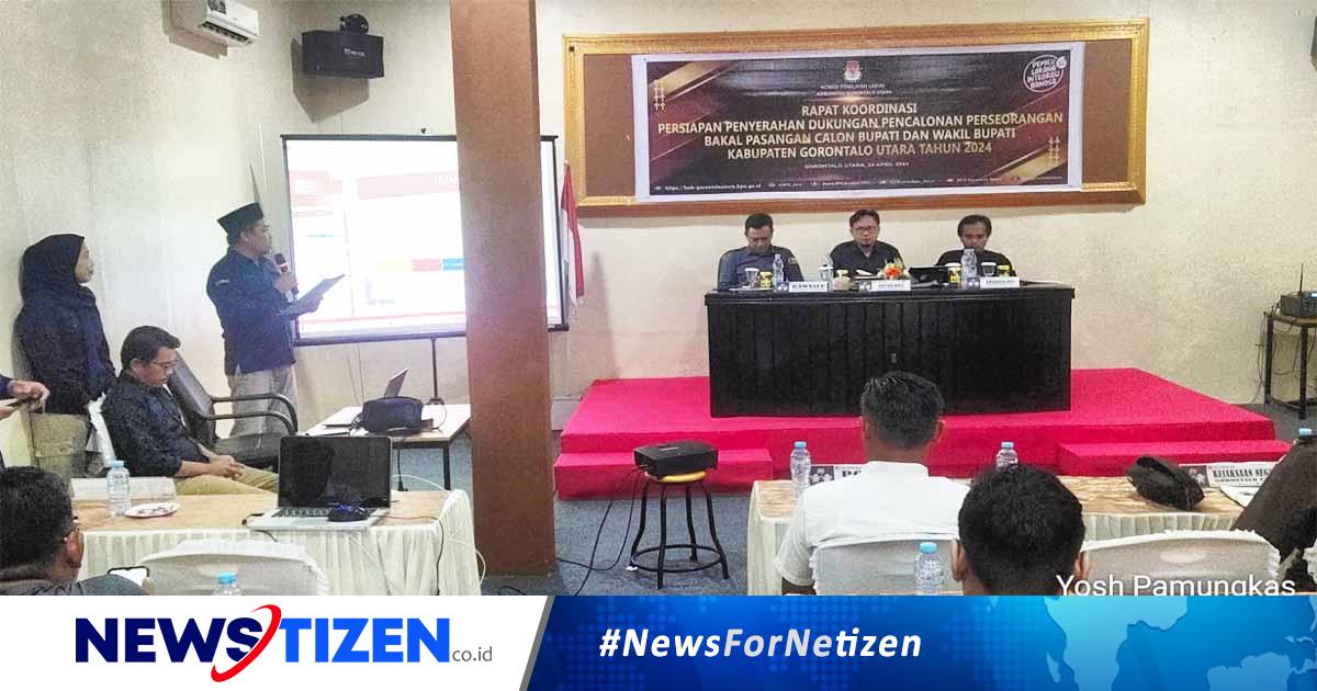 , Gorontalo Utara – Bertempat di Gedung Pertemuan Anbril Kwandang, Komisi Pemilihan Umum (KPU) Kabupaten Gorontalo Utara (Gorut) menggelar Rapat Koordinasi (Rakor) Persiapan Penyerahan Perseorangan Bakal Calon Bupati dan Wakil Bupati Kabupaten Gorontalo Utara Tahun 2024 pada Selasa (30/04/2024).