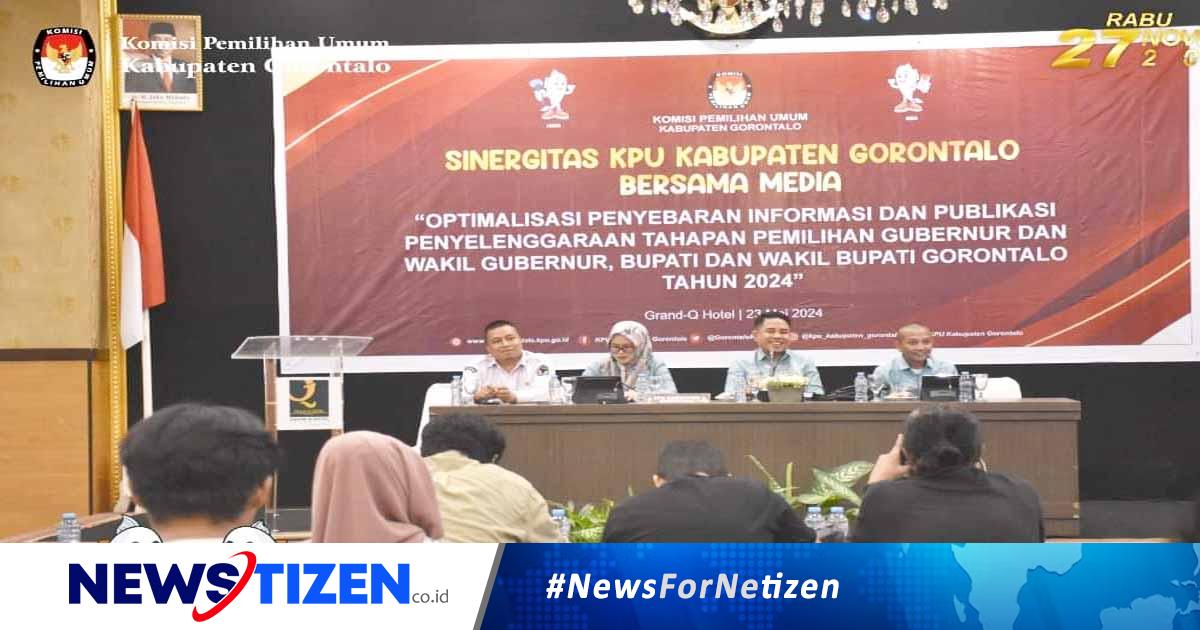 newstizen.co.id, Gorontalo – Komisi Pemilihan Umum (KPU) Kabupaten Gorontalo mengadakan pertemuan dengan pimpinan media massa di Gorontalo guna mengoptimalkan penyebaran informasi dan publikasi terkait tahapan Pemilihan Gubernur dan Wakil Gubernur, serta Bupati dan Wakil Bupati Gorontalo. Pertemuan ini berlangsung di Grand Q Hotel, Kota Gorontalo, pada Kamis, 23 Mei 2024.