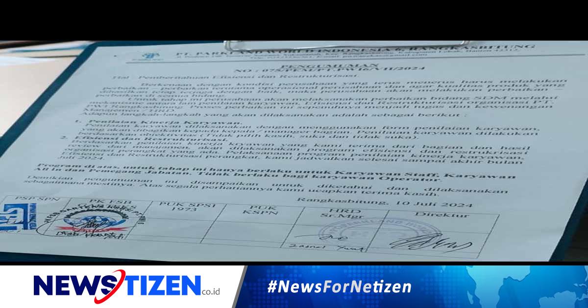 “Iya pak (menyebut wartawan), pusing sekarang mah kerja kita dihantui rasa ketakutan. Gimana kerja mau bisa tenang coba, Direktur Mr. Yhun dan HRD Pak Zainal mengeluarkan peraturan yang semena-mena. Mereka akan mengadakan efisiensi terhadap karyawan berdasarkan hasil review mereka. Mungkin itu yang menyebabkan salah satu serikat ngirim pesan usulan ke buyer agar PWI 6 Rangkasbitung ini ditutup,” kata Mawar (Kamis, 18/07/2024).