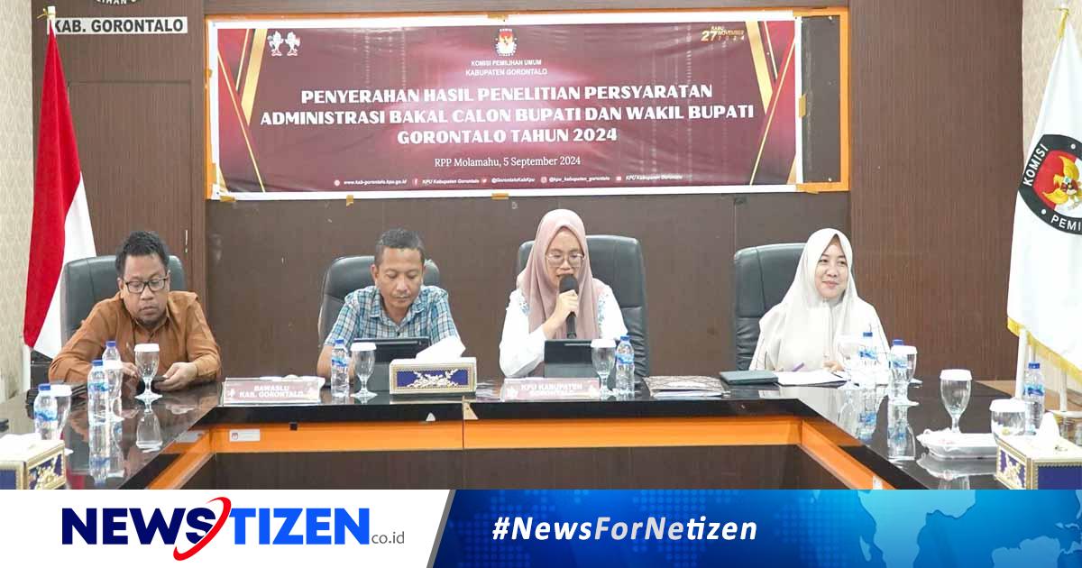 newstizen.co.id, Gorontalo – KPU Kabupaten Gorontalo telah menyelesaikan tahapan penting dalam proses Pemilihan Bupati dan Wakil Bupati Gorontalo Tahun 2024. Pada Kamis, 5 September 2024, KPU secara resmi menyerahkan hasil penelitian persyaratan administrasi bakal calon bupati dan wakil bupati dalam sebuah acara yang berlangsung di Aula RPP Molamahu, KPU Kabupaten Gorontalo.