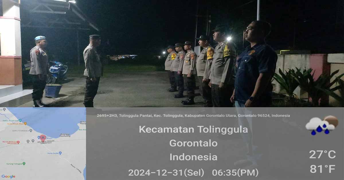 Kapolsek Tolinggula, melalui Kanit Reskrim Syaril Kamasi, SH, menyampaikan bahwa pengamanan malam tahun baru akan difokuskan pada seluruh wilayah hukum Polsek Tolinggula, yaitu Kecamatan Tolinggula dan Kecamatan Biau.