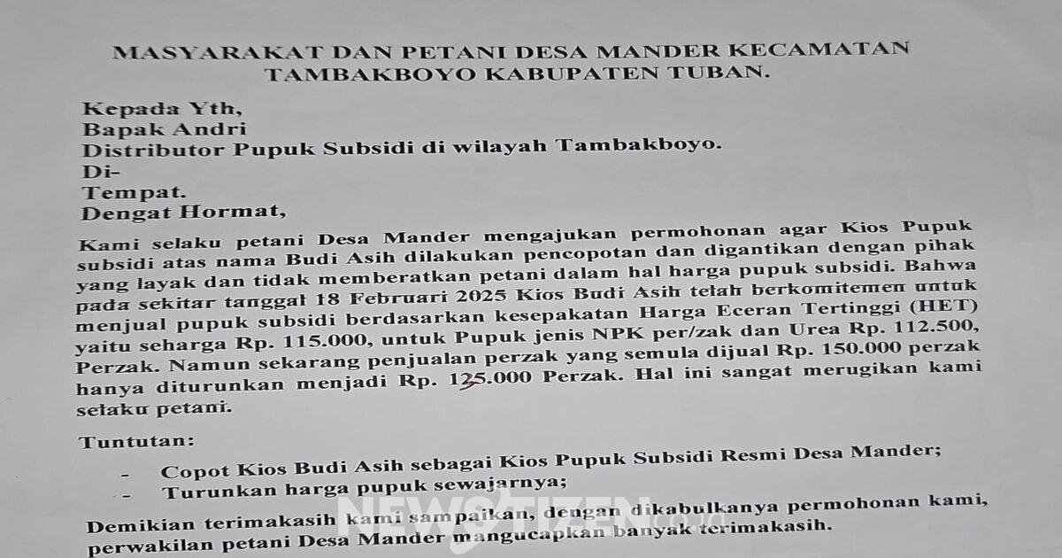 “Kemudian para Petani Mander sudah geram atas tindakan Kios pada intinya kami menolak harga tersebut karena ada dokumen yang ditandatangani siap menjual pupuk di harga HET. Tutupnya.