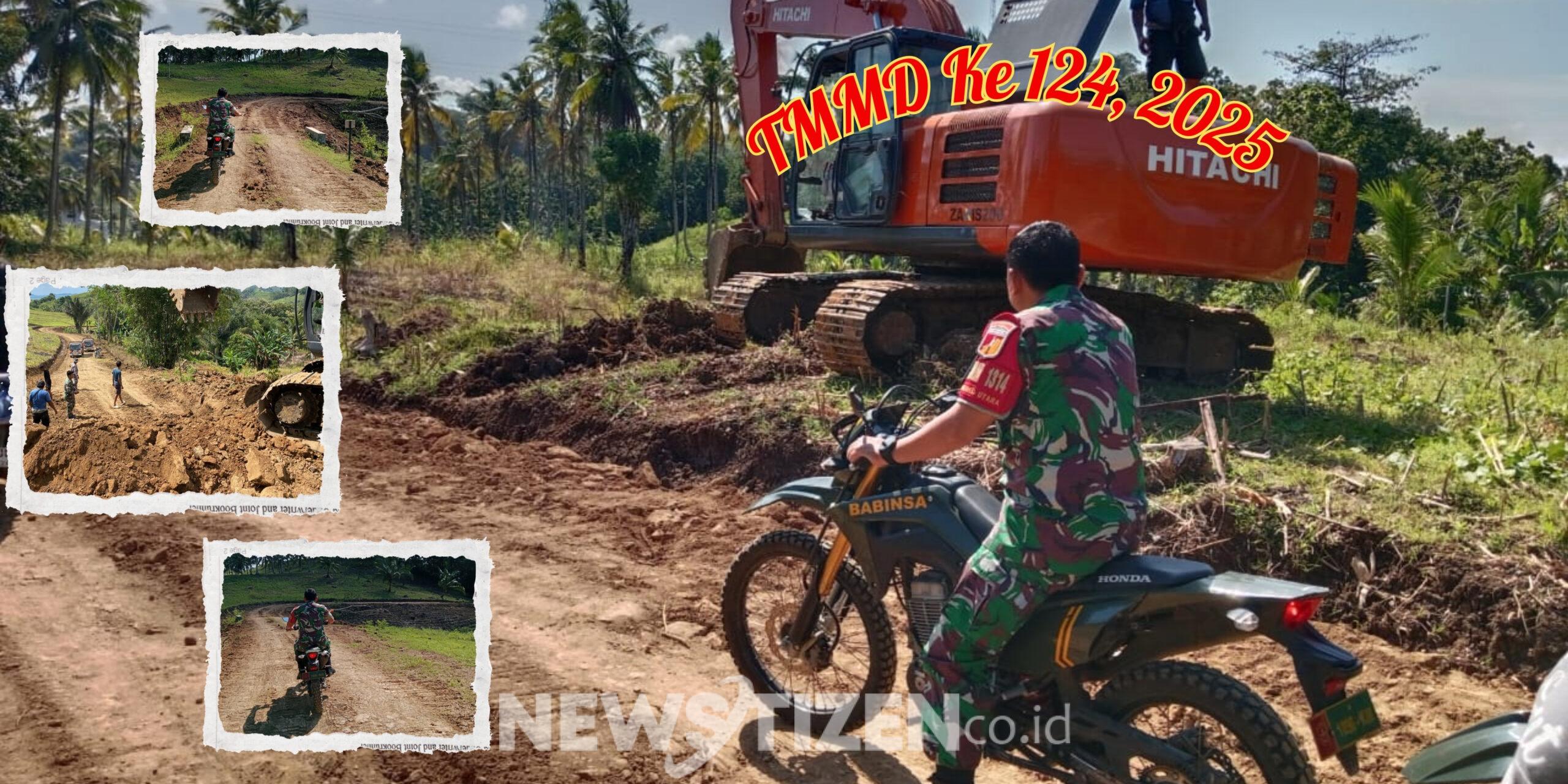 newstizen.co.id Gorontalo Utara, 10 Mei 2025 — Komandan Satuan Tugas (Dansatgas) TNI Manunggal Membangun Desa (TMMD) ke-124 Gorontalo Utara, Letkol Inf Rayner D.R. Wajong, menunjukkan komitmen tinggi terhadap percepatan pembangunan infrastruktur pedesaan. Dengan menggunakan motor trail milik Babinsa, Dansatgas TMMD 124 menembus medan jalan yang masih dalam proses pengerjaan di Desa Ombulodata, Kecamatan Kwandang, Sabtu (10/05/2025).