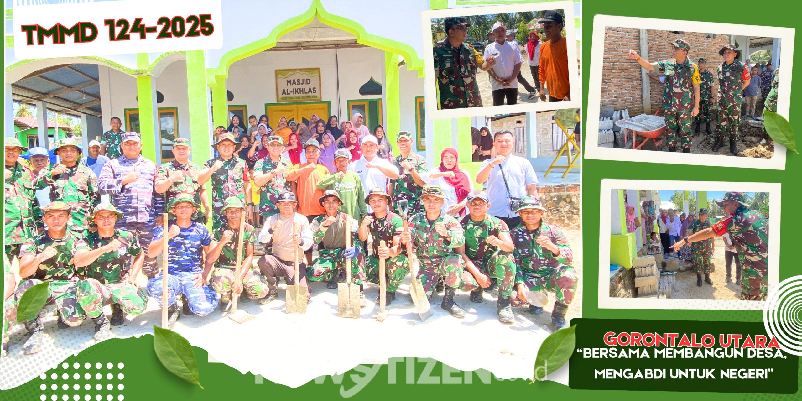 newstizen.co.id Desa Ombulodata, Gorontalo Utara – Suasana haru dan penuh kehangatan menyelimuti kedatangan Tim Pengawasan dan Evaluasi (Wasev) TNI di Masjid Al-Ikhlas, Desa Ombulodata, Kecamatan Kwandang, Kabupaten Gorontalo Utara. Dalam kunjungan tersebut, Tim Wasev meninjau langsung progres pembangunan pagar dan fasilitas MCK (Mandi, Cuci, Kakus) yang menjadi bagian dari sasaran fisik program TNI Manunggal Membangun Desa (TMMD) ke-124. Rabu (14/05/2025)