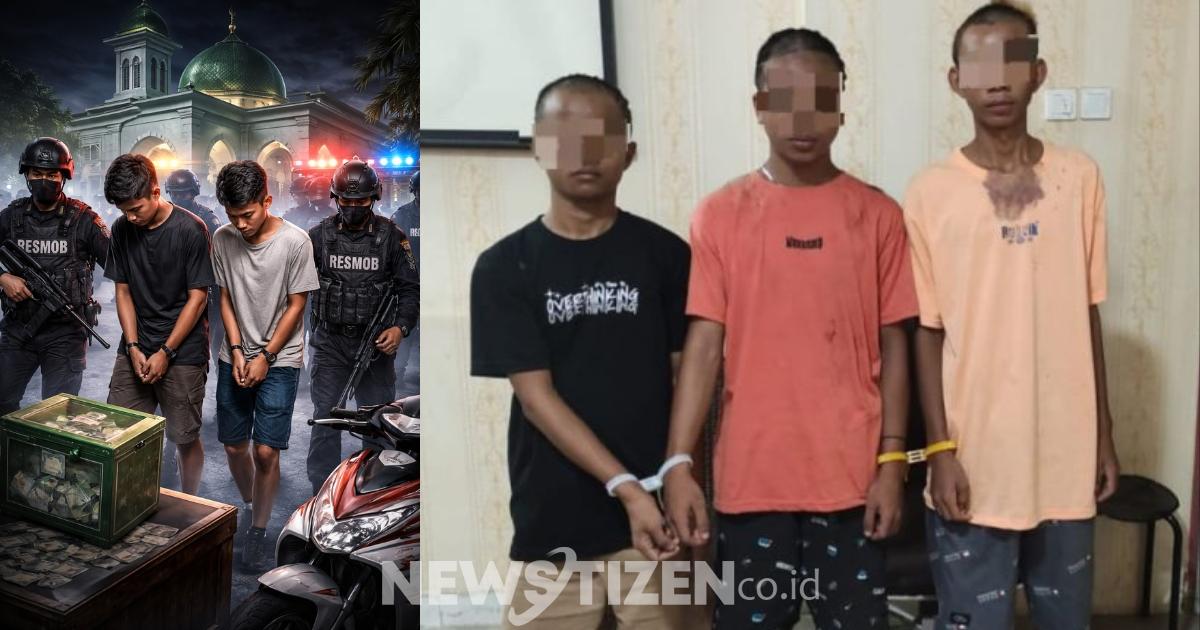 newstizen.co.id Gorontalo – Upaya melindungi kesucian rumah ibadah kembali ditegaskan oleh Polda Gorontalo. Tim Opsnal Resmob/Analis Direktorat Reserse Kriminal Umum (Ditreskrimum) Polda Gorontalo bergerak cepat mengungkap dan mengamankan tiga terduga pelaku pencurian kotak amal Masjid Jami Sabilil Huda di Desa Pantungo, Kecamatan Telaga Biru, Kabupaten Gorontalo, Jumat (9/1/2026).