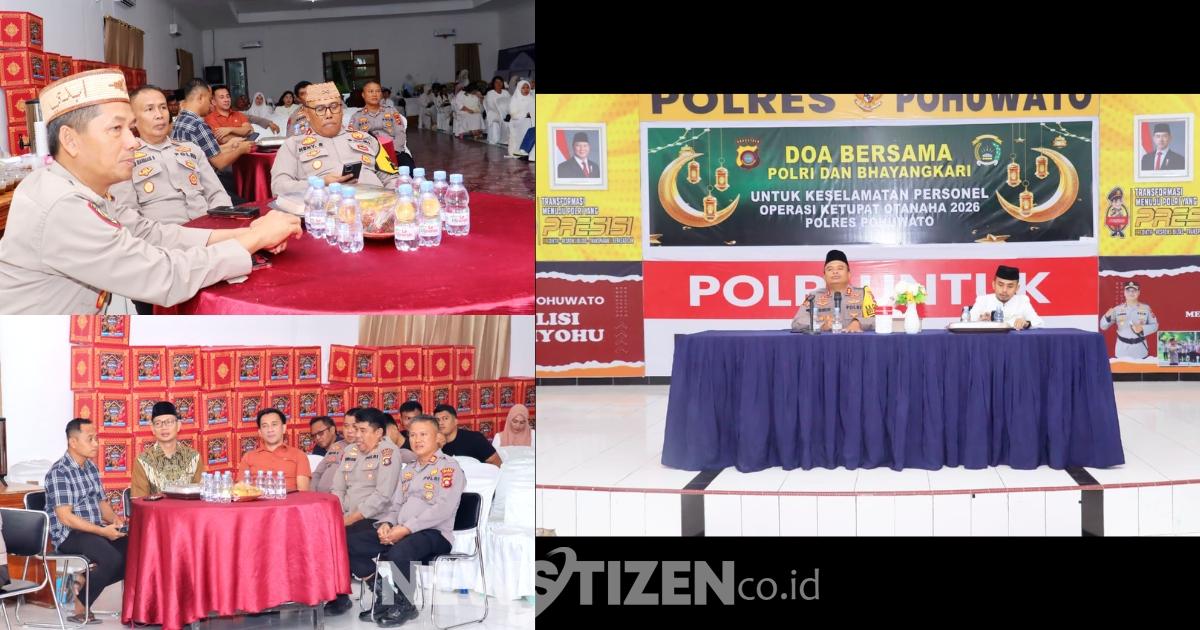 Rabu (18/3/2026), Aula Catur Prasetya Polres Pohuwato menjadi saksi suasana khusyuk saat jajaran personel Polri bersama Bhayangkari bersimpuh dalam doa bersama, memohon ridha dan perlindungan Tuhan Yang Maha Esa demi kelancaran pelaksanaan Operasi Ketupat Otanaha 2026.
