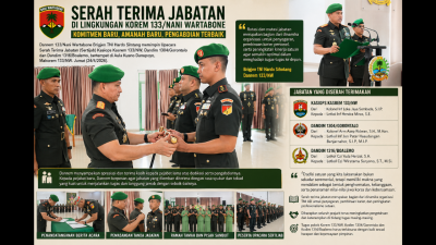 GORONTALO – Komandan Korem (Danrem) 133/Nani Wartabone, Brigjen TNI Hardo Sihotang, memimpin langsung Upacara Serah…